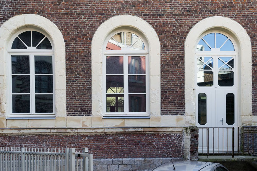 Le remplacement des menuiseries extérieures bois sur mesure, portes et fenêtres est attribué au terme d’un appel d’offres de la ville de Valenciennes à la Menuiserie BOUILLON. Les menuiseries sont en pin, à recouvrement, et sont fournies avec la peinture de finition d’usine.
